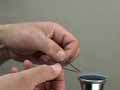 A bobby pin is heated until it glows red hot and then slowly cooled. It loses its springiness and becomes very flexible. A simulation illustrates this process at the atomic level. When the bobby pin is reheated and then rapidly cooled, it becomes very brittle. A simulation illustrates this process at the atomic level. When a hardened bobby pin is slowly heated until a blue coating forms on its surface, it once again becomes springy. This process is also illustrated with an atomic-level simulation.