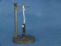 Nickel is ferromagnetic. Domains of electrons align causing the nickel sphere to be attracted to the hanging magnet. Heating the nickel sphere scrambles the alignment of the electrons, and the sample is no longer attracted to the magnet. After the nickel sphere has cooled on the brass plate to below 627 Kelvin, the electrons realign and the ferromagnetism returns.Alignment of spins below and above 627 K in the absence of a magnetic field are shown.