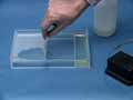 An aquarium pump is used to blow small uniform soap bubbles through a syringe needle. A slider is used to apply stress to the array. Bubbles in a raft form grains of close-packed arrays with various orientations relative to each other.Demonstration