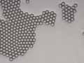 An array of soap bubbles is used to simulate a close-packed arrangement of atoms in a metal crystal. When stress is applied, the bubbles form grains of close-packed arrays in different orientations, and the dislocations move through the system. Close-ups indicate that the bubbles move one at a time, leading to a stepwise displacement of the defect.
