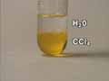 When polar water is added to the test tube, it forms a layer on top of the carbon tetrachloride, since water is immiscible with, and less dense than carbon tetrachloride.