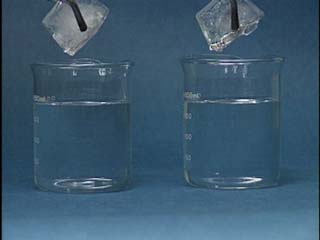 Isotopes: Heavy Water Ice Cubes - Ice cubes of deuterium oxide and normal water in liquid water