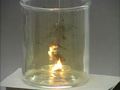 Chips of calcium carbide are placed on a watch glass inside a cylinder of chlorine. Water is slowly dripped onto the calcium carbide generating acetylene gas. The acetylene reacts rapidly with the chlorine producing clouds of carbon. When a stopper from a bottle of aqueous ammonia is brought near the flame, white fumes of ammonium chloride are produced indicating the presence of hydrogen chloride. Although acetylene continues to be generated, the reaction with chlorine ceases when all of the chlorine has been consumed.