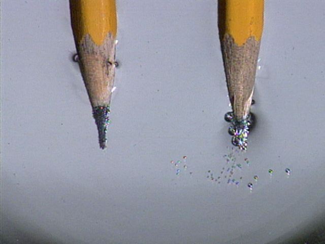 (Electrolysis of a tin(II) chloride solution produces oxygen at the anode and tin metal at the cathode.)