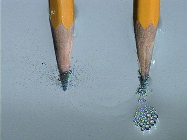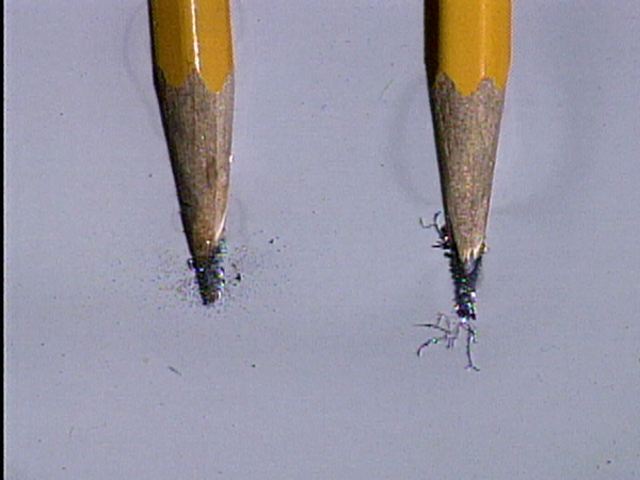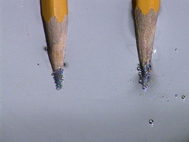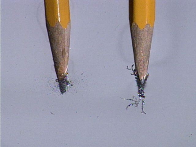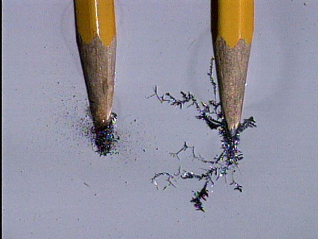 (Electrolysis of a silver nitrate solution produces oxygen at the anode and silver at the cathode.)