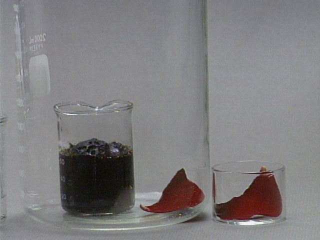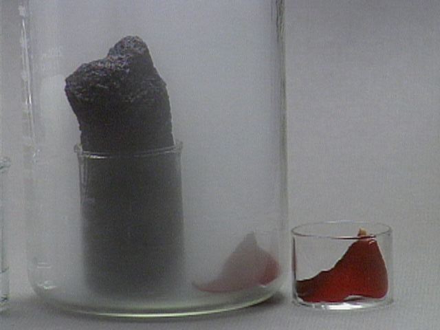 A rose petal is bleached by the sulfur dioxide.Additional still images for this movie