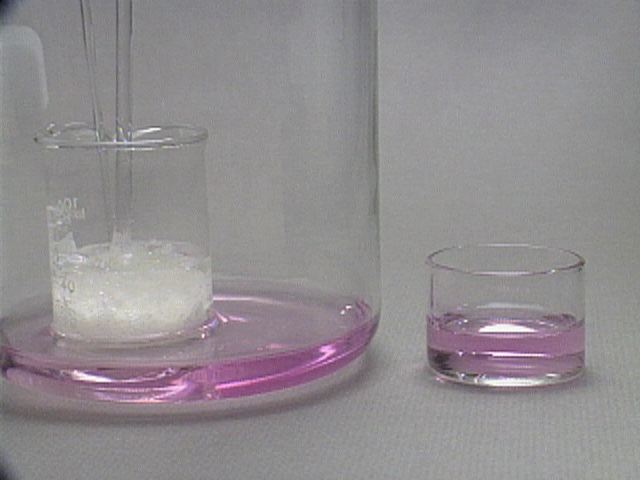 In a second experiment, the sulfur dioxide reduces purple permanganate to nearly colorless manganese(II).