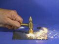 Potassium chlorate is sprinkled on a small mound of red phosphorus. A gentle tap with a hammer causes the mixture to explode.
