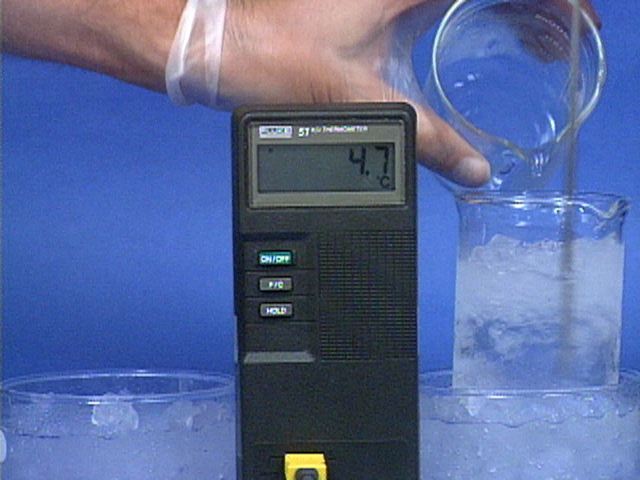 The acid is poured into the ice.