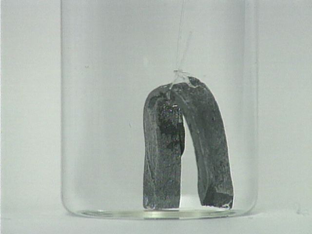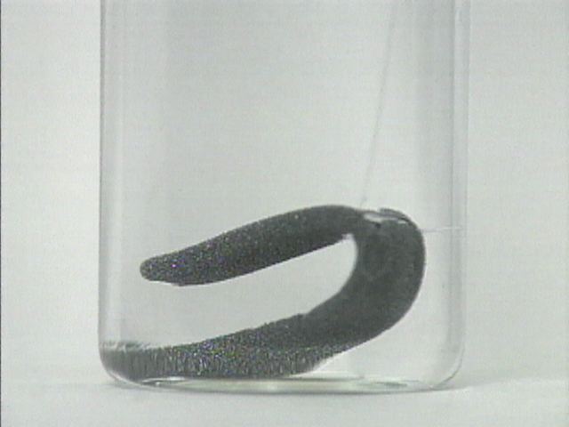 Time lapse shows the reaction of zinc metal with aqueous cadmium nitrate. Note the formation of cadmium crystals on the surface of the zinc.