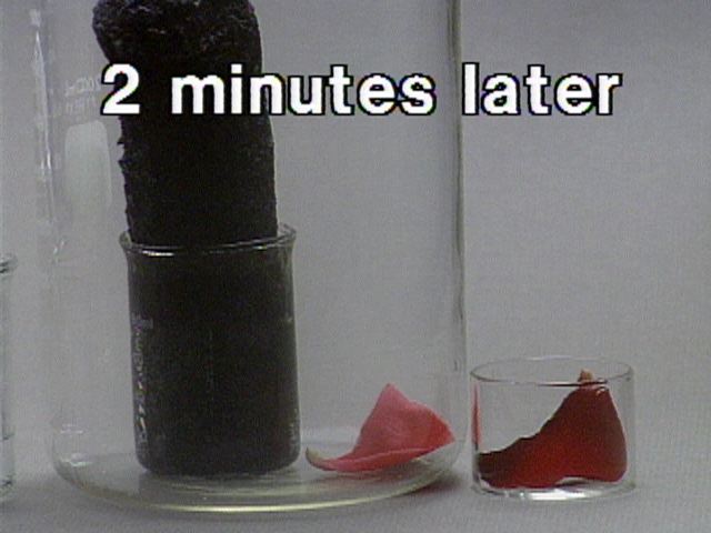 Sulfuric acid also acts as an oxidizing agent, and is reduced to sulfur dioxide. A rose petal is bleached by the sulfur dioxide.