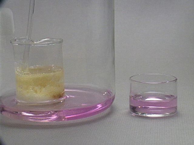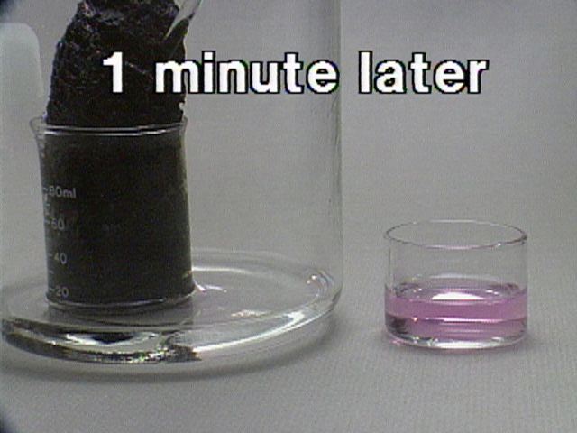 Formation of Carbon from Carbohydrate - With Permanganate Still Images Concentrated sulfuric acid is added to table sugar, sucrose, which had previously been mixed with water. The sulfuric acid dehydrates the sugar, a carbohydrate. The sugar turns brown due to the removal of water in this caramelization process. The remaining black solid contains mostly carbon. Steam generated in this exothermic process causes the solid mass to expand. Sulfuric acid also acts as an oxidizing agent, and is reduced to sulfur dioxide. The sulfur dioxide reduces dissolved purple permanganate to nearly colorless manganese(II). You can get at large JPEG versions of the images by means of the following links. 0 1 2 3 4 5 6 7 8 9 10 11 Back to the topic