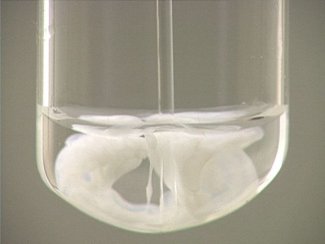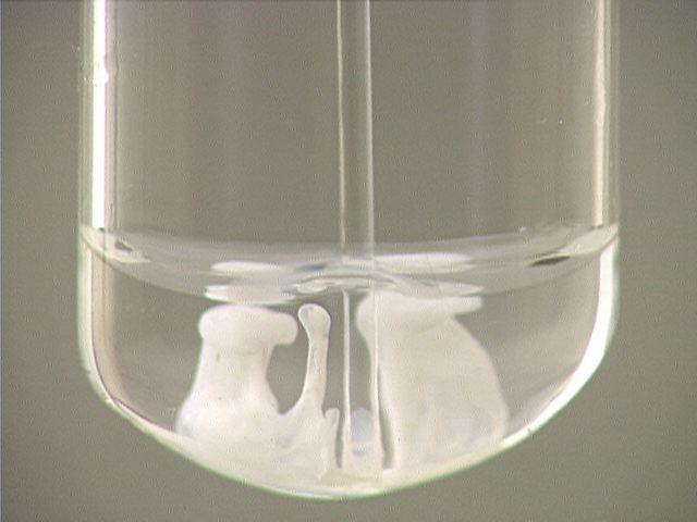 Here, sodium bromide (NaBr) is added to silver nitrate (AgNO3). The result is a white precipitate.