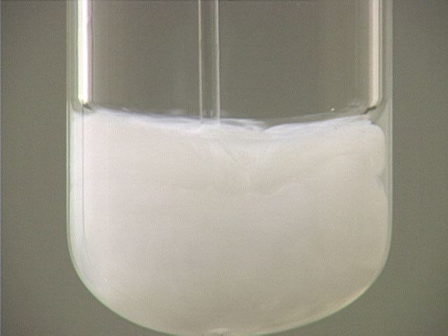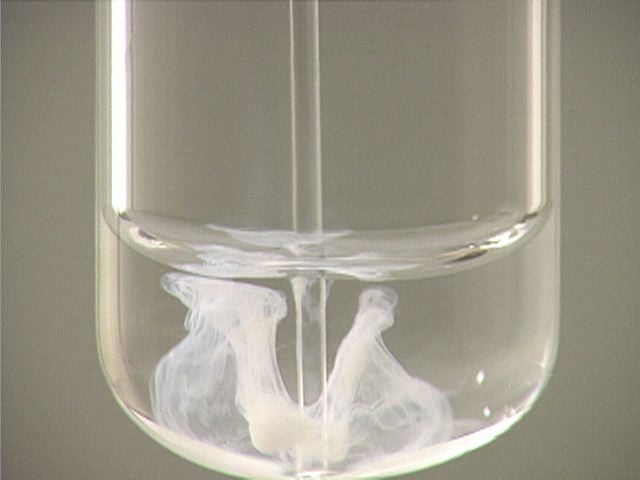 Here, sodium chloride (NaCl) is added to silver nitrate (AgNO3). The result is a white precipitate.