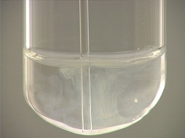 Here, ammonia (NH3) is added to silver nitrate (AgNO3). The result is a light tan precipitate.