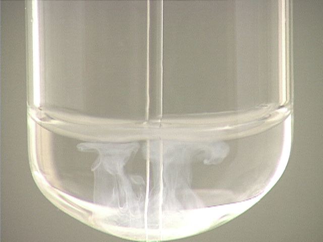 Here, ammonia (NH3) is added to cadmium nitrate (Cd(NO3)2). The result is a finely divided white precipitate.