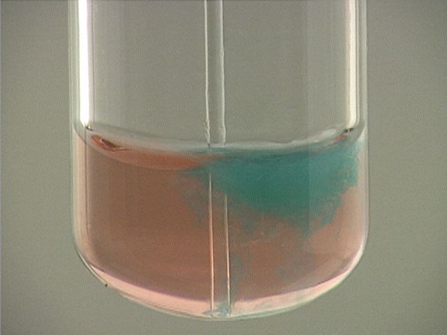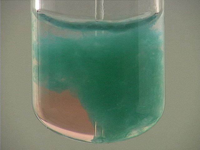Here, ammonia (NH3) is added to cobalt(II) chloride (CoCl2). The result is a blue-green precipitate.