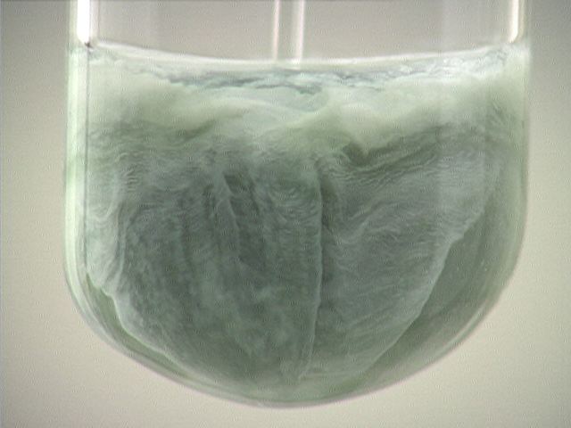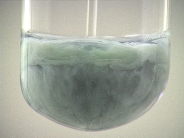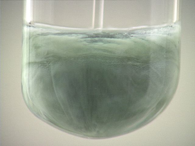 Here, sodium sulfide (Na2S) is added to chromium(III) chloride (CrCl3). The result is a very fine precipitate believed to be chromium hydroxide.