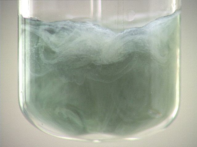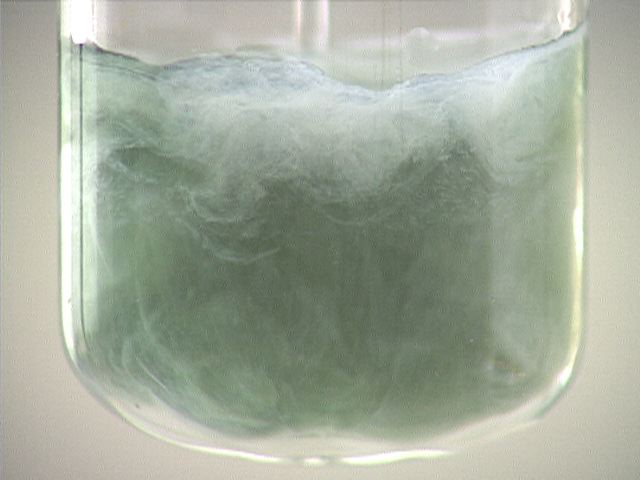 Here, ammonia (NH3) is added to chromium(III) chloride (CrCl3). The result is a pale precipitate.