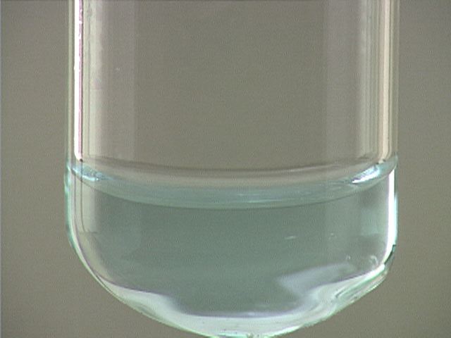 Here, sodium hydroxide (NaOH) is added to copper(II) nitrate (Cu(NO3)2). The result is a blue precipitate.