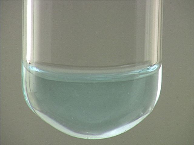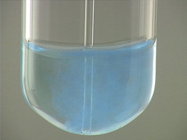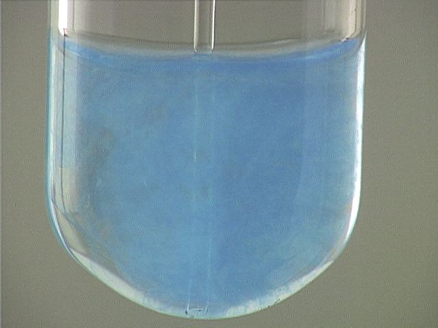 Here, sodium hydroxide (NaOH) is added to copper(II) sulfate (CuSO4). The result is a pale blue precipitate.