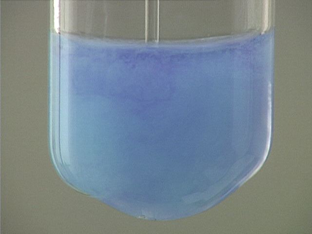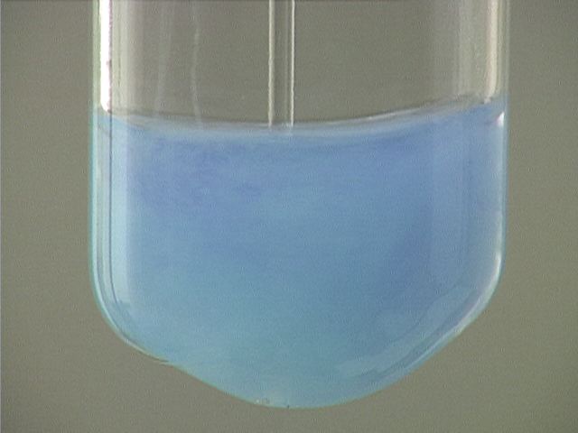 Here, ammonia (NH3) is added to copper(II) sulfate (CuSO4). The result is a pale blue precipitate, which is Cu(OH)2(s). The dark blue color is due to Cu(NH3)4 2+ .