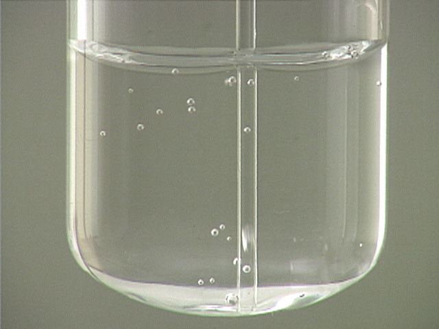 Here, sodium carbonate (Na2CO3) is added to sulfuric acid (H2SO4). The result is evolution of large gas bubbles.