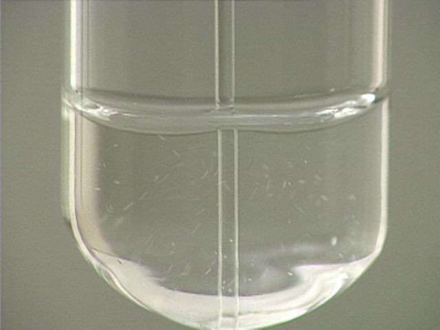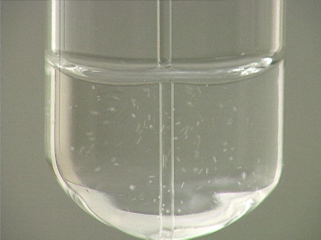Here, sodium carbonate (Na2CO3) is added to hydrochloric acid (HCl). The result is a flurry of small bubbles.