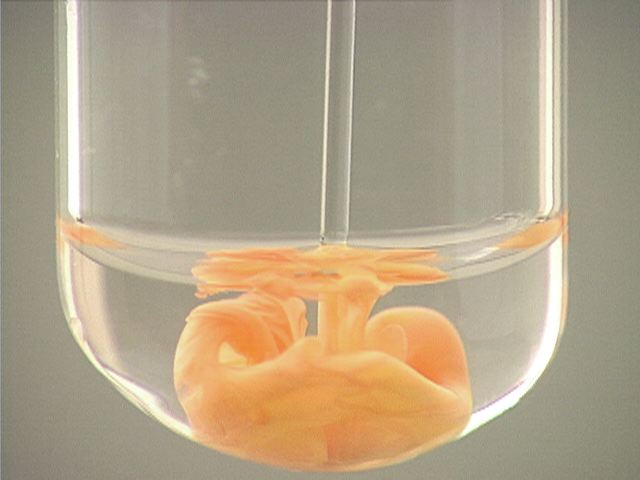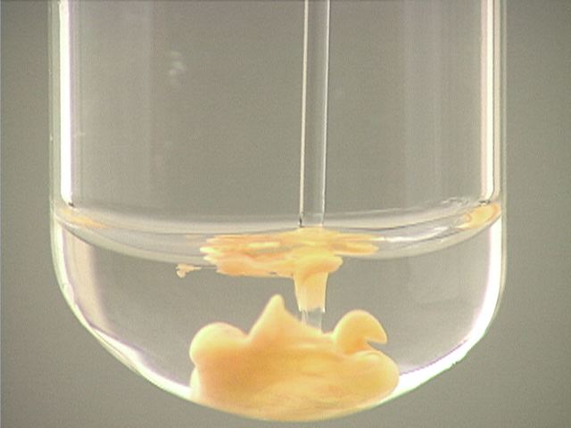 Here, sodium iodide (NaI) is added to mercury(II) ion (Hg2+). The result is an orange precipitate.