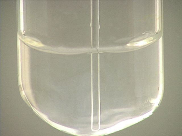 Here, sodium bromide (NaBr) is added to mercury(I) nitrate (Hg2(NO3)2). The result is a small amount of precipitate.