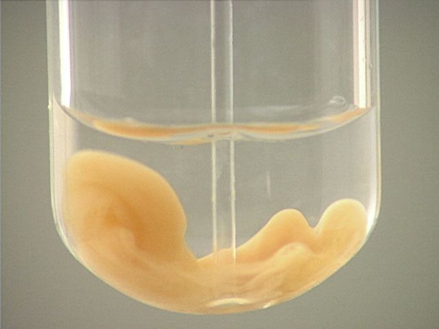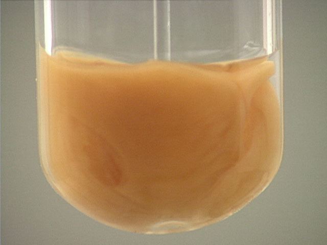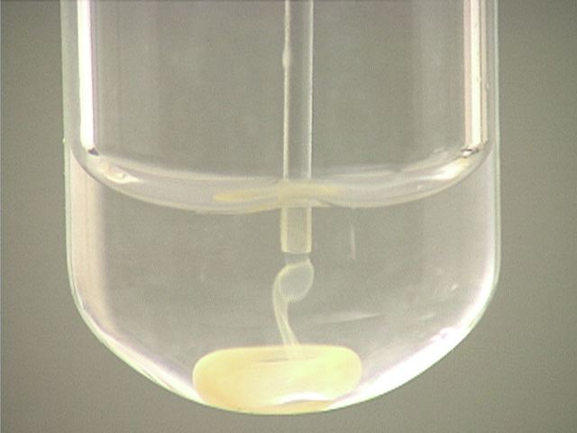 Here, sodium carbonate (Na2CO3) is added to mercury(I) nitrate (Hg2(NO3)2). The result is an orange precipitate.