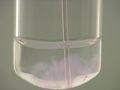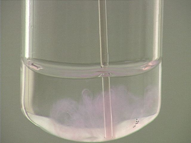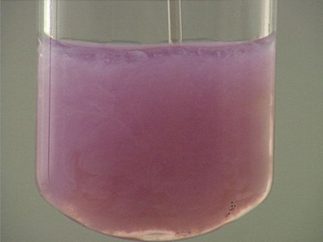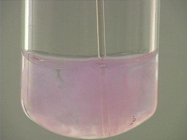 Here, cobalt(II) chloride (CoCl2) is added to sodium carbonate (Na2CO3). The result is a pink precipitate.