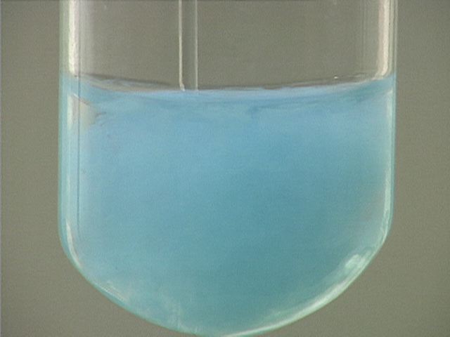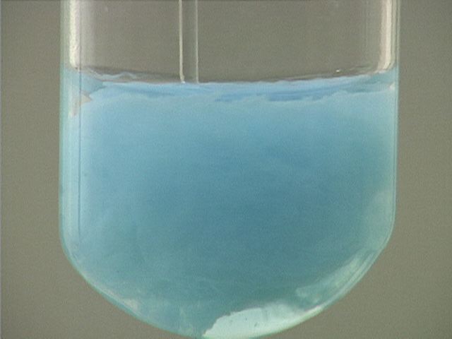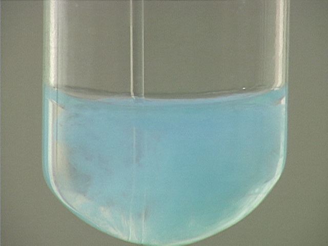 Here, copper(II) nitrate (Cu(NO3)2) is added to sodium carbonate (Na2CO3). The result is a pale blue precipitate.