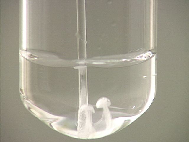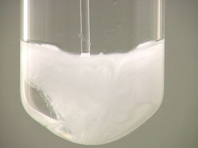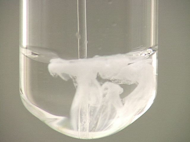 Here, sodium sulfate (Na2SO4) is added to lead(II) nitrate (Pb(NO3)2). The result is a white precipitate.