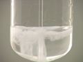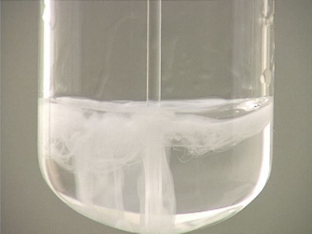 Here, ammonia (NH3) is added to lead(II) nitrate (Pb(NO3)2). The result is a white precipitate.