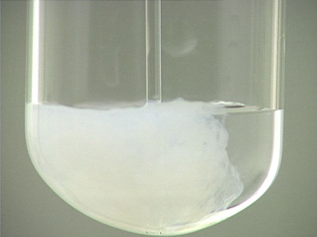 Here, sodium sulfide (Na2S) is added to zinc nitrate (Zn(NO3)2). The result is a white precipitate.