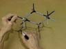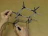 A model of the chair conformation of cyclohexane is oriented so that its outline reveals the shadow of a chair. Tracing the projection of this outline shows how the chair conformation is portrayed on a flat piece of paper. First, the outline of the carbon skeleton is drawn, then the positions of the hydrogen atoms. Notice there are 2 types of bonds in chair cyclohexane - axial bonds that are perpendicular to the ring and equatorial bonds that are roughly in the plane of the ring.