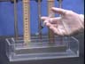 The height of the mercury in each tube is 736 millimeters. A syringe is filled with water and carefully injected into the open end of the barometer (by going underneath the pool of mercury.) The liquid rises up to the top of the mercury column.