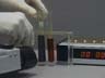 Bromine is added to two test tubes containing pentane. One test tube is covered with black paper. Both tubes are irradiated with light from a slide projector. The red color of bromine disappears from the tube exposed to light. After the light is turned off, the paper is removed. The tube not exposed to light retains the color of bromine. The vapor above each tube is tested with pH paper. The test tube which lost the color of bromine shows the presence of an acidic gas - hydrogen bromide.