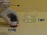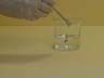 Calcium carbide lumps are dropped into a beaker of water. Bubbles of flammable acetylene gas are produced.