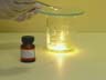 6M hydrochloric acid is added to sodium hypochlorite bleach. The beaker is covered and green chlorine gas fills the container. Calcium carbide is then added. The bubbles of acetylene which form burst into flame and soot is deposited on the walls of the beaker.