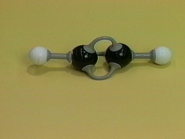 A ball-and-stick model of acetylene is shown to illustrate the linear geometry of the triple bond.