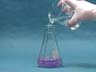 Water is added to a flask of colored kerosene. The flask is stoppered, shaken, and the two liquids separate. Soap is added to the flask and it is shaken again. The soap emulsifies the kerosene and disperses it throughout the water.