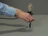 A conductivity apparatus is placed in a beaker of deionized water and no light is observed. When the conductivity apparatus is placed in glacial acetic acid no conductance is observed showing that water and glacial acetic acid are poor conductors of electricity (unionized). However, when water is added to the pure acetic acid, the bulb glows brightly demonstrating the importance of water for the ionization of acetic acid.