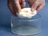 A superabsorbent polymer absorbs many times its weight in water, forming a gel. Sodium chloride disrupts the gel, and the mixture becomes a liquid again.