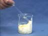 Adding a solution containing a heavy metal, such as lead nitrate, will cause egg white proteins to denature and precipitate. A white solid is formed.