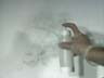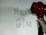 Water is spotted on a piece of paper. A solution of glutamic acid is also spotted on the paper. The paper is dried with a heat gun. Ninhydrin solution is sprayed on the paper to allow it to react with the amino acid. As the paper dries and is heated, the ninhydrin reacts with the amino group on the glutamic acid to produce a violet compound. There is no reaction with the water and ninhydrin.