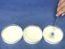 Milk is poured into three petri dishes. Rennin, a protease, is added to two of the samples to curdle the milk. Calcium chloride is added to one of the samples.