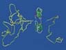 Narrative A chemical reaction occurs. The pre-protein is cut. Once this chemical change occurs, the molecules aren't as strongly attracted to each other. The protease monomers drift off to start another cleavage cycle and the new activated protein begins its biological function. Let's take a closer look at the pre-protein. We can show the cleavage site with different models such as this liquorice bond representation. Here is a molecule we call an inhibitor. Like the cleavage site it attracts the protease. Unlike the pre-protein, the inhibitor is not cleaved by the protease, instead the protease tends to stay docked because no reaction has occurred to decrease the attraction. This is important because the protease is no longer available to cut the pre-protein so HIV can't reproduce. |