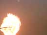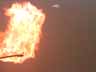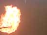 A latex balloon containing hydrogen gas and approximately 1 ml of a saturated solution of lanthanum chloride in a 50/50 (by volume) mixture of water and methanol is exploded. (This is a stop-action/slow-motion version with no sound.)